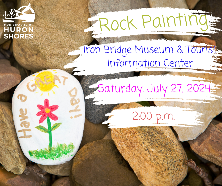 Rock Painting « All Events This event has passed. Rock Painting 27 July 2024 @ 2:00 pm - 4:00 pm « Wharncliffe Community Garage Sale Alzheimer Info & Discussion Group » Add to calendar Google Calendar iCalendar Outlook 365 Outlook Live Details Date: 27 July 2024 Time: 2:00 pm - 4:00 pm Event Categories: Community News, Recreation Event Tags:Iron Bridge Museum, Recreational Events, Rock Painting Venue Iron Bridge Museum and Tourist Information Center 1 James Street Iron Bridge, ON P0R 1H0 Canada + Google Map Related Events Thessalon Pickleball 🏓 December 15 @ 6:30 pm - 8:30 pm 🌟 EarlyON Child and Family Centre 🌟 December 16 @ 9:00 am - 12:00 pm Northshore Cornhole League 🎯 December 16 @ 7:00 pm - 8:00 pm