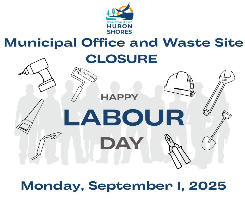 Office and Waste Site Closure – September 1, 2025 Please be advised that the Municipal Office and Waste Sites will be CLOSED on Monday, September 1, 2025, for the Labour Day holiday. Regular office hours will resume on Tuesday, September 2, 2025, and Waste Site hours will resume on Wednesday, September 3, 2025. Wishing everyone a safe and happy long weekend!