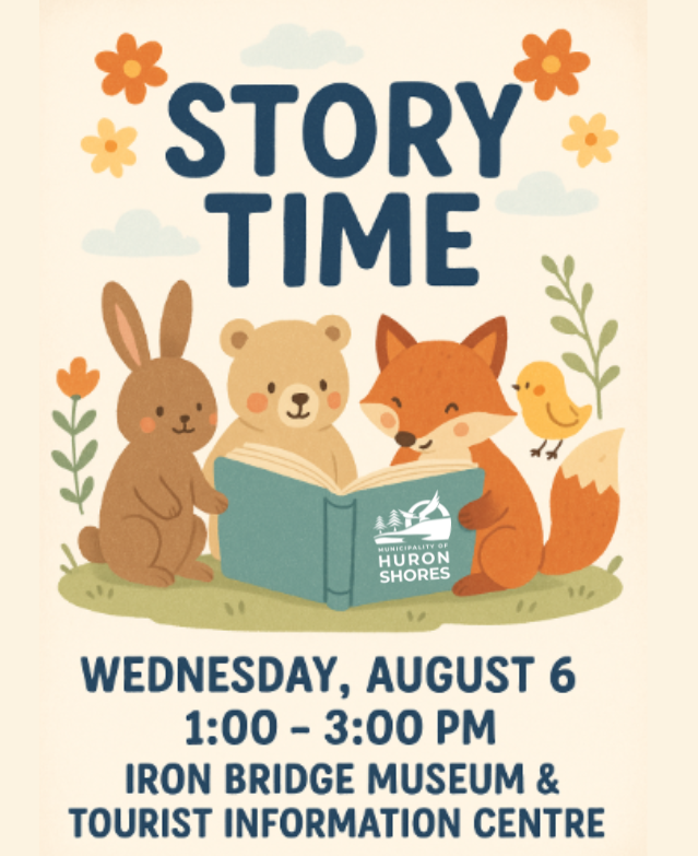 Story Time & Sweet Treats! 📖🍪 Wednesday, August 6 | 1–3 PM📍 Iron Bridge Museum & Tourist Information Centre Come join us for Story Time — a fun and relaxing afternoon perfect for kids and families! 📚✨ Settle in and enjoy some great stories in a cozy, welcoming setting. And while you’re here, don’t miss Terry’s Treats! 🍪 She’ll be set up with her famous homemade goodies to make your visit even sweeter. 🎉 Good stories, tasty treats, and a great way to spend the afternoon — you won’t want to miss it!