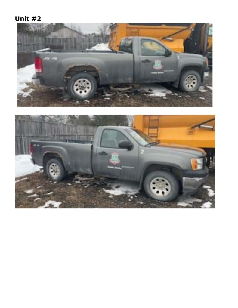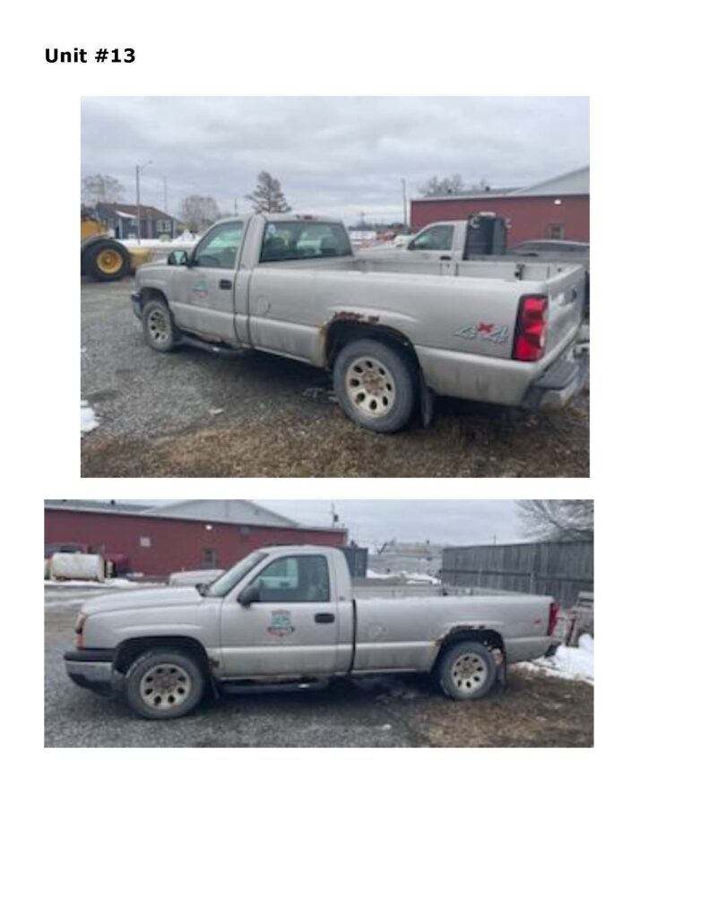 Surplus Vehicles and Equipment The Municipality of Huron Shores has declared surplus on the following Public Works Vehicles and Equipment, to be sold “as is” “where is”, and is inviting sealed bids to be submitted by interested parties. *Sealed bids must include HST* Unit #2: 2011 GMC Sierra; Unit #4: 2005 International Model 7600 6×4 Plow Truck; (minimum bid of $7,500.00) Unit #7: 2005 Chevrolet Silverado One-ton Flatbed; Unit #13: 2006 Chevrolet 4×4, half-ton pickup; 1 (one) collapsible canvas wheelbarrow; 1 (one) 3-ton cyclone chainfall; 1 (one) Sears Roebuck sight level with stand and measuring stick; and 1 (one) Makita 3/8″ drill with battery and charger. Items listed will require a sealed bid, submitted to:Natashia Roberts, CAO/Clerk7 Bridge Street, Iron Bridge, ON P0R 1H0P.O Box 460 All bids will be accepted until 4:30 p.m. on Monday, March 11, 2024. Items can be viewed by contacting the Municipal Office, by calling 705-843-2033, or by email email@huronshores.ca Payment methods accepted are: e-transfer, cash, debit or cheque. Click Image to Enlarge